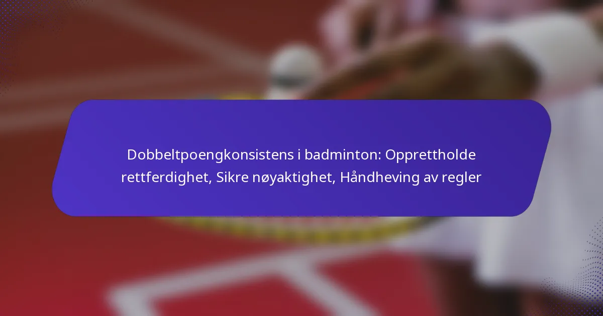 Rettferdighet i poenggivingen i badminton double opprettholdes gjennom klare regler, konsekvent håndheving og mekanismer for å gjennomgå avgjørelser. Disse elementene arbeider sammen for å sikre at alle spillere har en lik mulighet til å konkurrere, minimere tvister og forbedre integriteten til spillet.